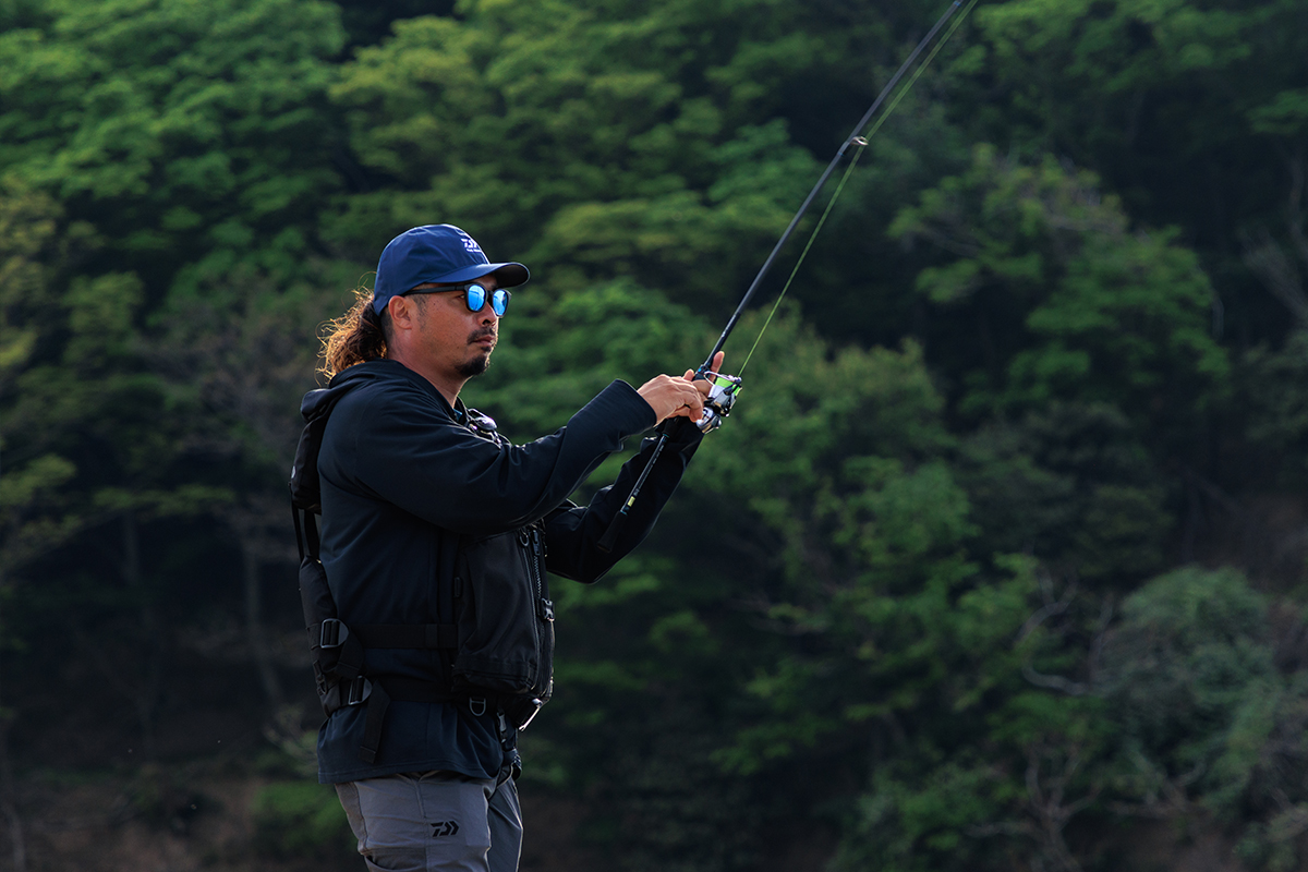 前作との違いは、まずガイドセッティングを見直して糸絡みをなくしました。また、若干ティップをより入りやすくしています。そうすることで手感度と目感度の両方がかなり向上しました。潮流の中だったり水深があってテンションがかかっているときなどに、しなっていたティップがツンってまっすぐになる、ティップランであるようなアタリも取りやすくなっています。潮の感度も驚くほど高くて、潮を釣っていくことが多い自分の釣りにおいて、この感度の高さは欠かせない武器になっています。