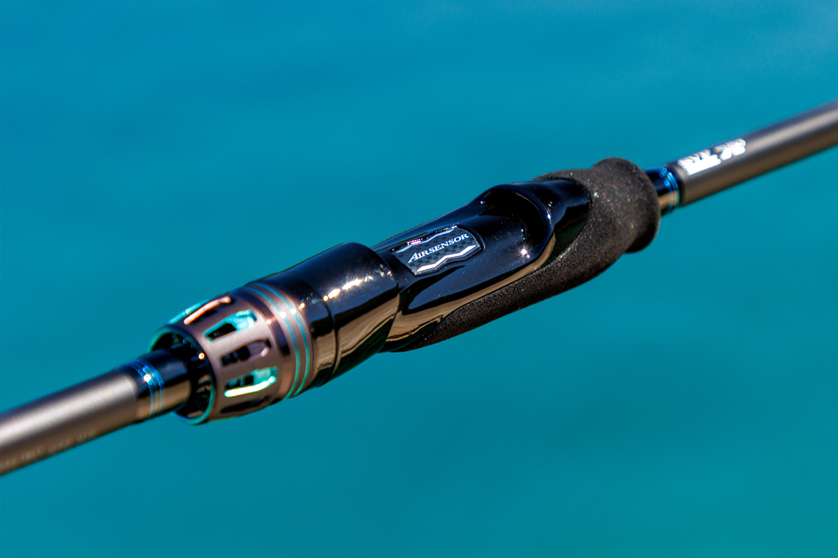 カーボンファイバーの入ったエアセンサーシートにより、軽量化・高強度・高感度を実現します。ロッドの用途に応じて専用設計がなされており、汎用リールシートでは体験できない操作性をもたらします。