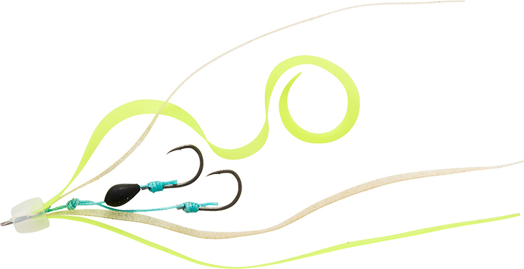 アシストラインに独自形状のビーズを搭載。 潮を受けることで浮力を生み、フックとネクタイが同調することでフッキング率がUP。