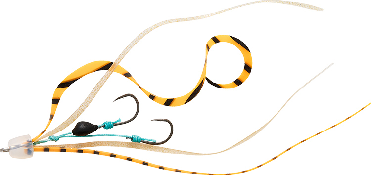 フィールドテスター・中井一誠が船長を務めるタイラバ船「海竜」で、日々の経験から 生み出された極細ネクタイ。半分にカットしたストレートカーリーとストレートを組 みあわせ、特に食い渋った時に真価を発揮することを中井自らが見出し製品化。