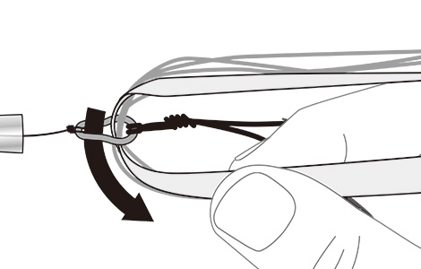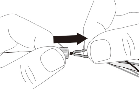(5)シリコンキャップを押さえてリーダーを引くことで、しっかりと固定できます。