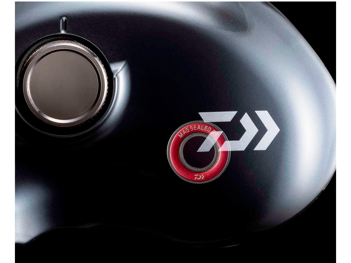 DAIWAは独自の技術で、世界で初めてボールベアリングそのものをマグシールド化することに成功しました。磁性を持つ液体の壁によって、ボールベアリング内部への水・異物の侵入が抑えられ、ボールベアリング本来の回転性能を維持しながら、錆・塩ガミ・異音を大幅に解消します。