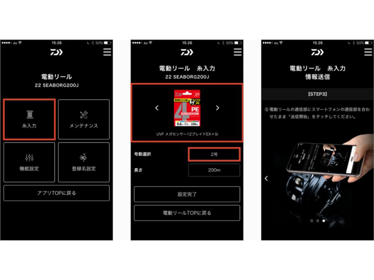 DAIWAアプリ⇔ 23SEABORG G400J連動による送受信アプリサービス