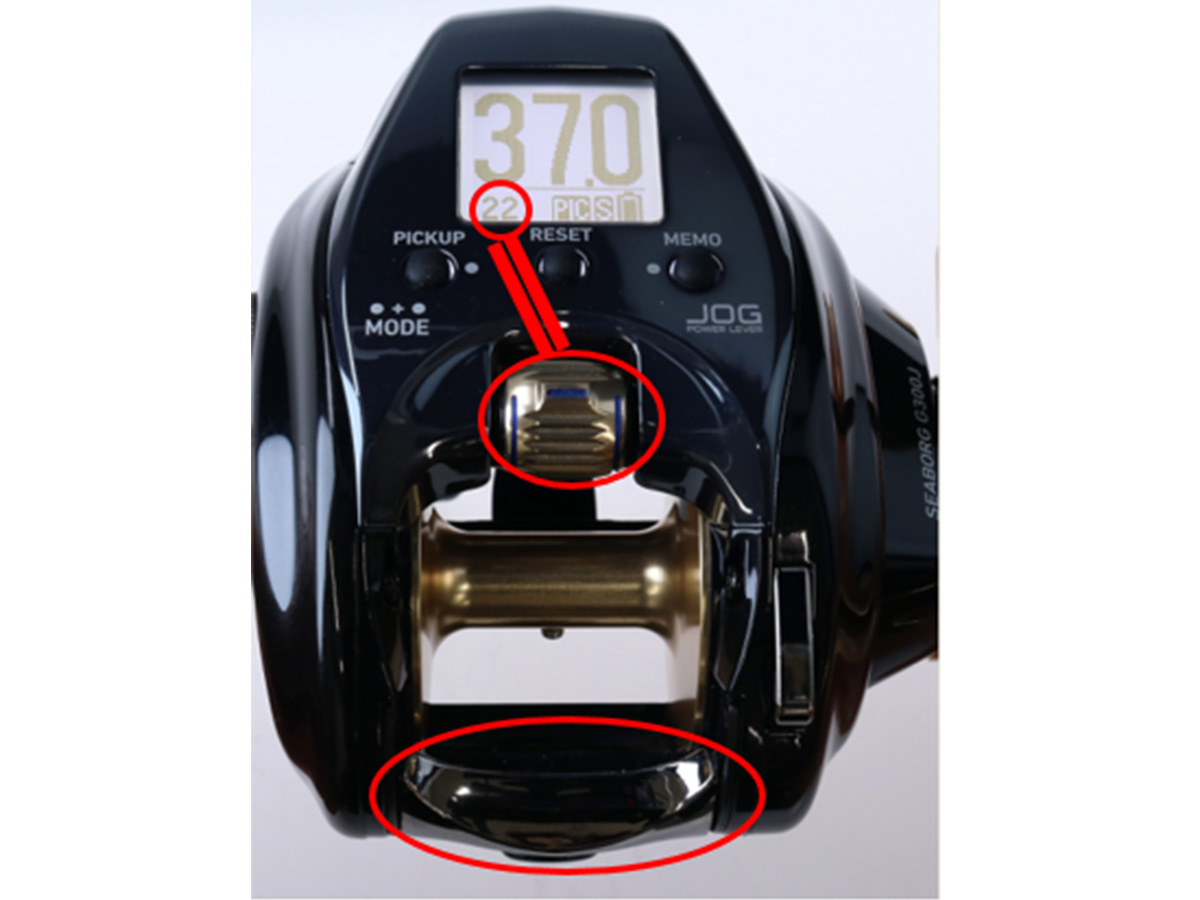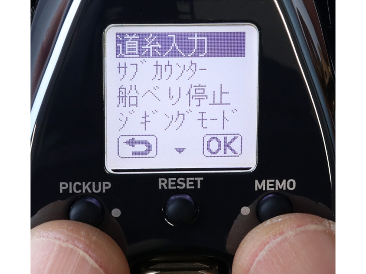 選べる船べり停止 | 電動巻き上げ時、設定した長さまで巻き上げたら自動的に巻き上げが停止する機能。取り込みに便利な長さに設定すれば手返し効率倍増、ロッド破損の主な原因である巻き込みの防止にも役立つ。 |