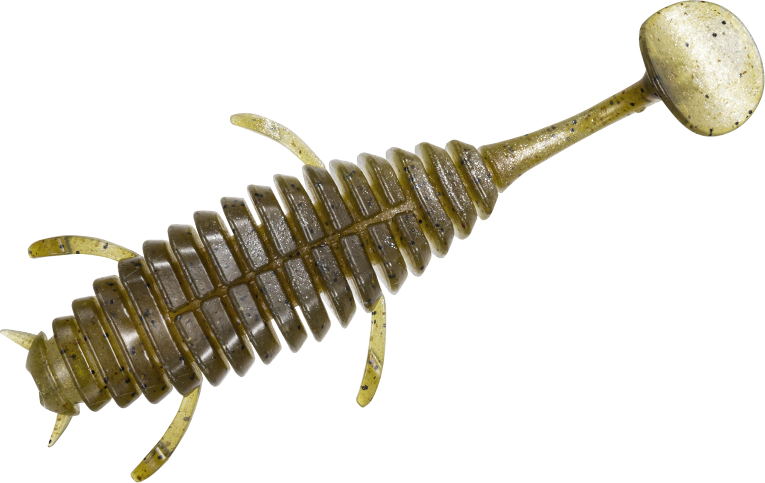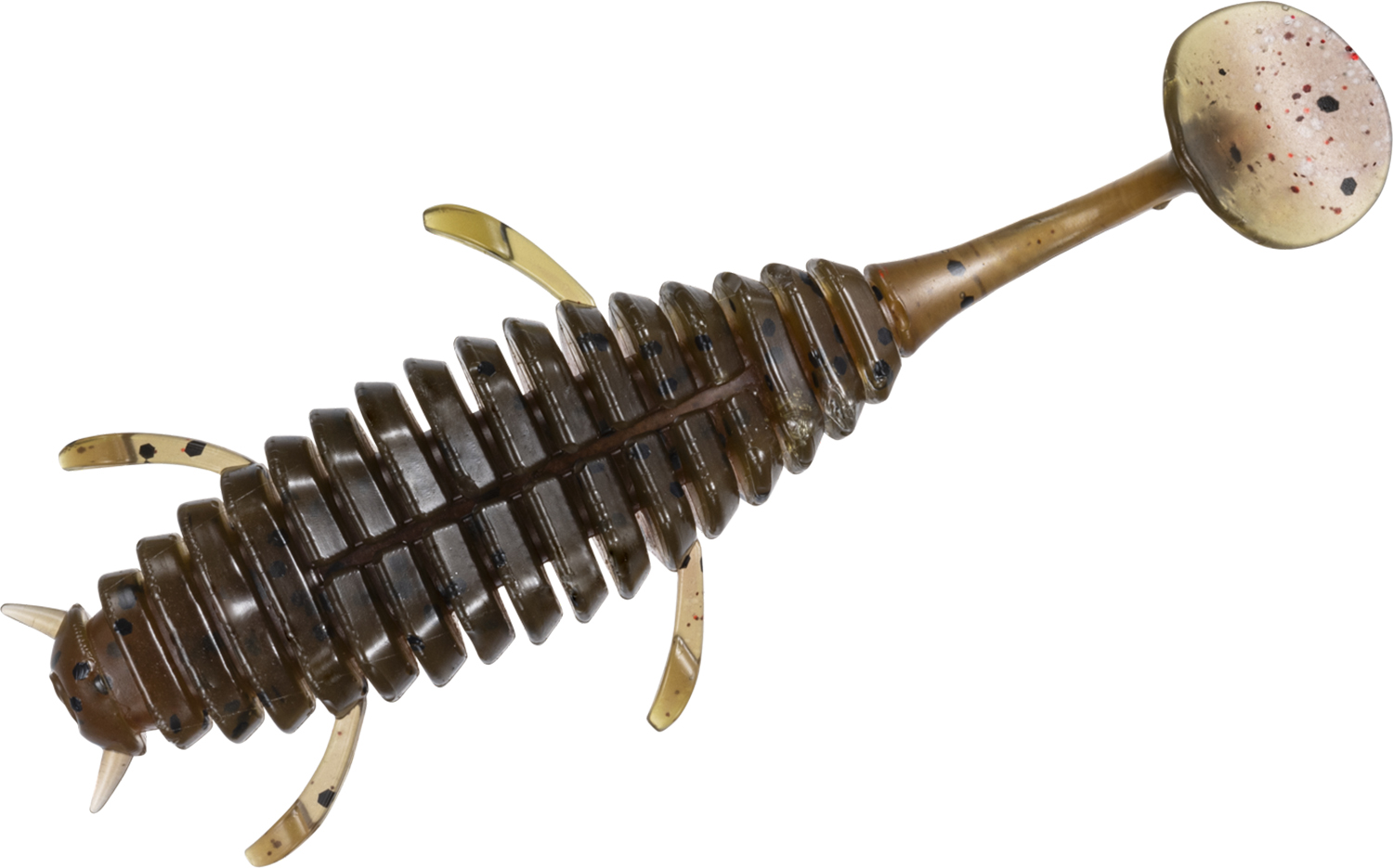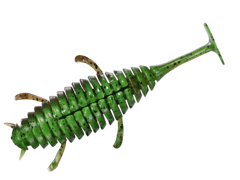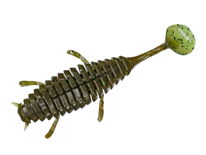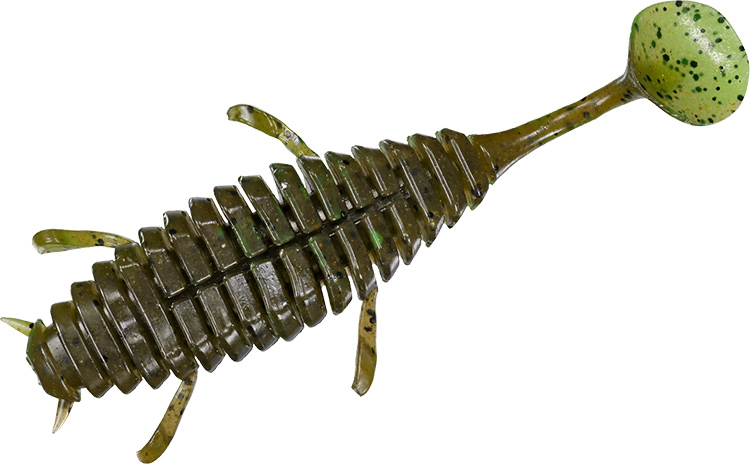 3.1inch | オカッパリを想定して作り上げた複雑波動系ワーム。ソフトマテリアルを採用し、弱い力でもテールがアクションするよう設計。ノーシンカーフォールでは、テールがブレーキとなり、爪をブルブルと震わせながらフォールする。また、ボディは溝の深い特殊形状の逆リブを採用。爪、テール、ボディからなる非常に複雑な水流を纏い、バスにアピールすることが出来る。リグはシンプルかつ単純なノーシンカーリグ、テキサスリグ、フリーリグで試してほしい。 推奨フック:WOS#1/0~#2/0 |