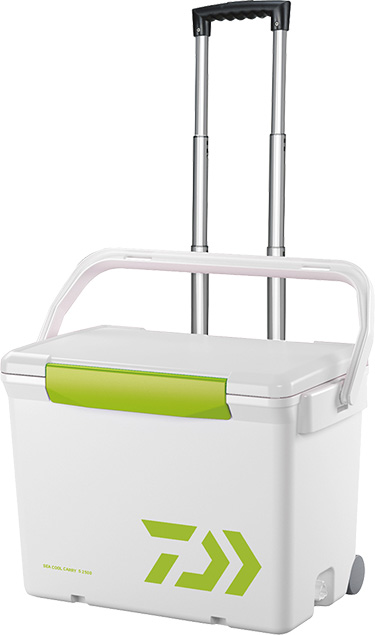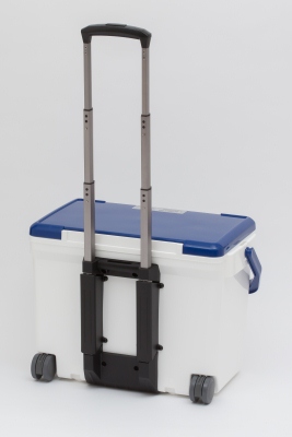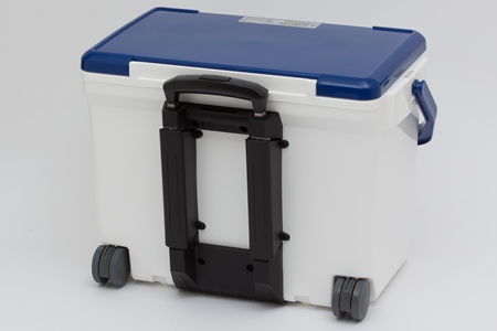 釣り場まで荷物を持って移動する際に便利なキャリーハンドル&キャスター付きのクーラーボックス。バッカンなどをまとめてクーラーの上に乗せることでたくさんの荷物を簡単に持ち運び可能。容量は弁当やコンビニ板氷、ペットボトルなどをたっぷり収納できる25リットルサイズ。堤防や港での移動はもちろん、電車の改札口も通れるサイズ設計で電車釣行にも最適。
