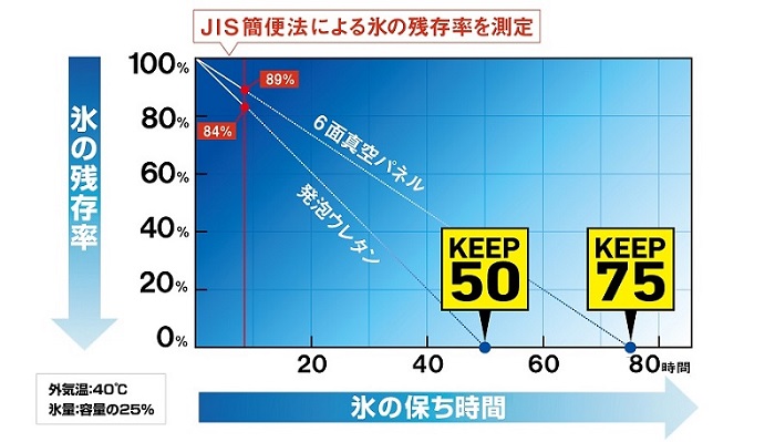 保冷力は、主に使用されている断熱材によって性能の差が発生する。