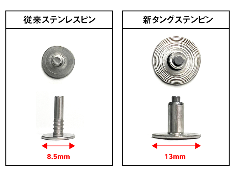 また、ピンの土台を従来のステンレスピンの約1.5倍に拡大し、突き上げ感も軽減。