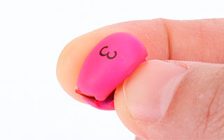 号数表記面を上に親指と人差し指でシンカーを摘み、親指をシンカーの割れ目に差し込みながら、親指を下方向に力を入れるとシンカーが開く。
