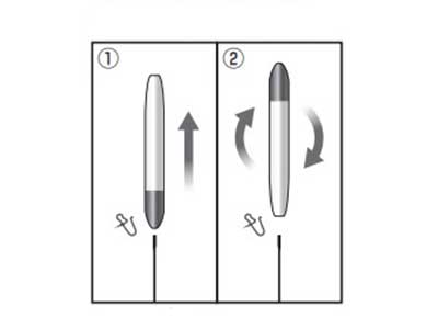 スナップを外してシンカー部を一度抜き取り、反転して元に戻す。