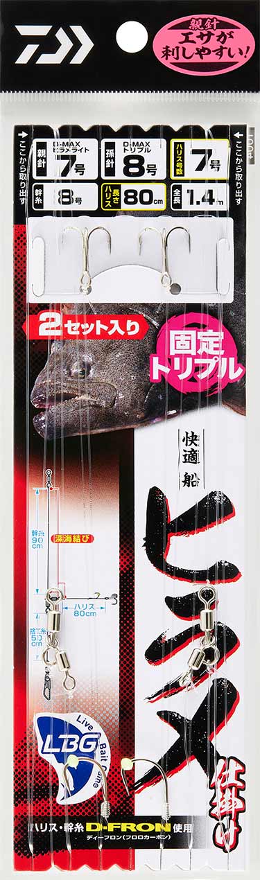 快適船ヒラメ仕掛け LBG 固定トリプル8/6-8 | 8/6 | 8/6 | 8 | 10 | 80 | 2 | 90 | 140 | 5 | 80 | 8 | 720 | 4550133294730 |