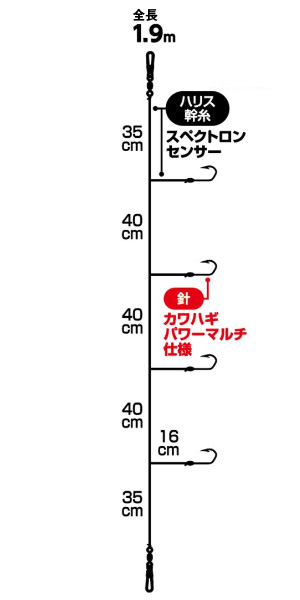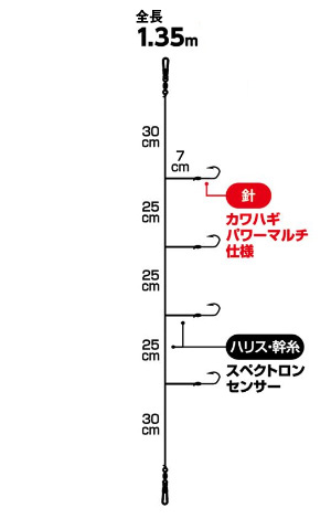 強靭で吸い込みやすいカワハギパワーマルチ仕様。本格ウマヅラハギ仕掛けの登場です。