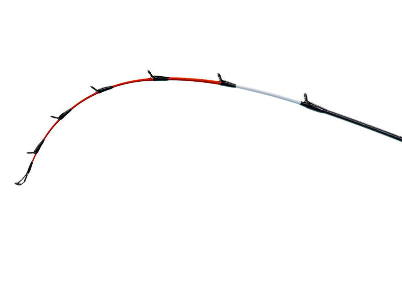 軽量・高感度を実現するAGS(エアガイドシステム)はカーボンフレームを採用しており、チタンと比較して約3倍の剛性をもつカーボンの特性から、ラインを通して伝わるわずかな信号を吸収することなくダイレクトにブランクに伝える高感度を有します。また、カーボンの軽量性によりロッド全体の軽量化にも貢献し、特に穂先部の軽量化につながることで感度の向上にも追加の効果が見込めます。