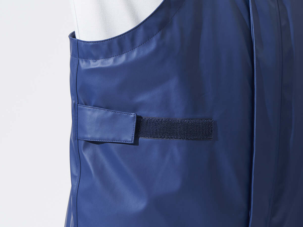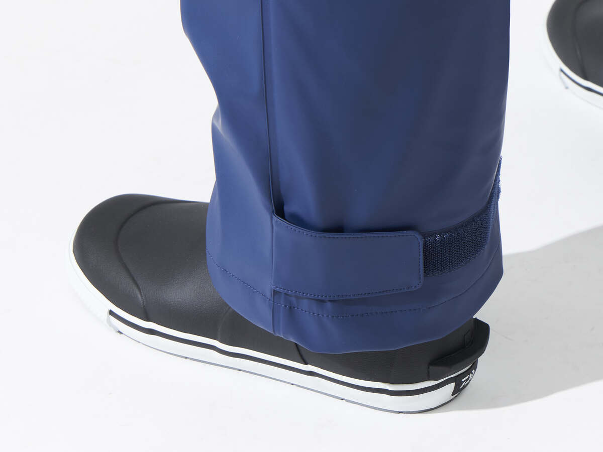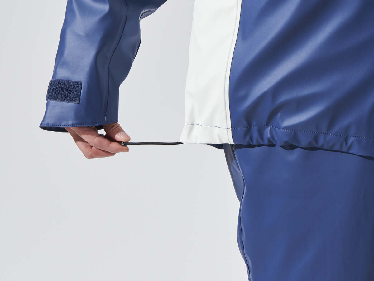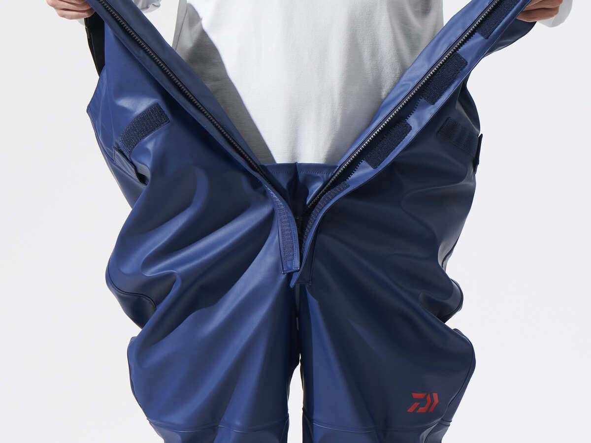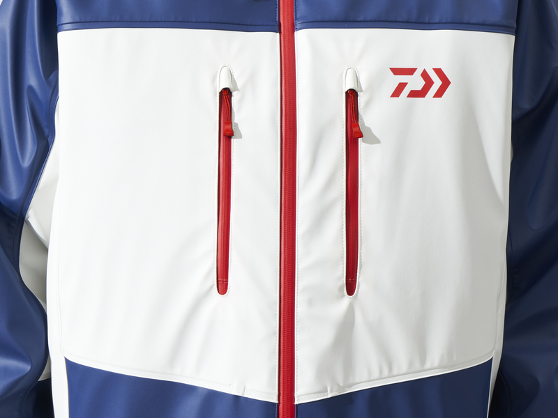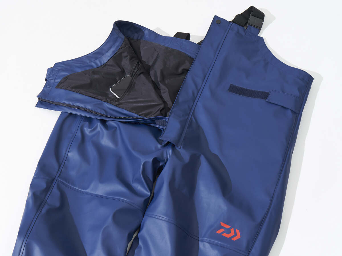 汚れが付きづらく、柔軟性と防水性に優れたポリウレタン防水素材を使用。魚の血やコマセなどで汚れやすい船釣りに最適。キャップインシステム対応キャップとフードのベルクロとを合体することで視界を広く保つ。チェストハイパンツ形状で広い範囲を水や汚れから護る。パンツのウエスト両脇にサイズ調整用ベルトを装備しウエストのフィット感を素早く調整可能。ジャケットには止水ファスナーポケット、パンツには内側収納ポケットを搭載。