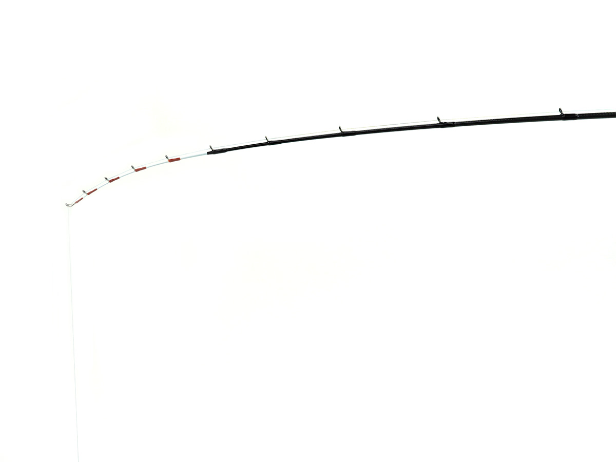 メガトップは繊維と樹脂が均一に分散するカーボンソリッドであり、どの方向にも同様の曲がりを見せます。結果、通常のカーボンソリッドに比べて強度が飛躍的に向上しました。これにより細径で柔軟、ハイテーパーな穂先を作ることが可能になり、手に響く感度はもとより穂先に表れる視覚的感度に優れるアタリのとれる穂先を実現します。