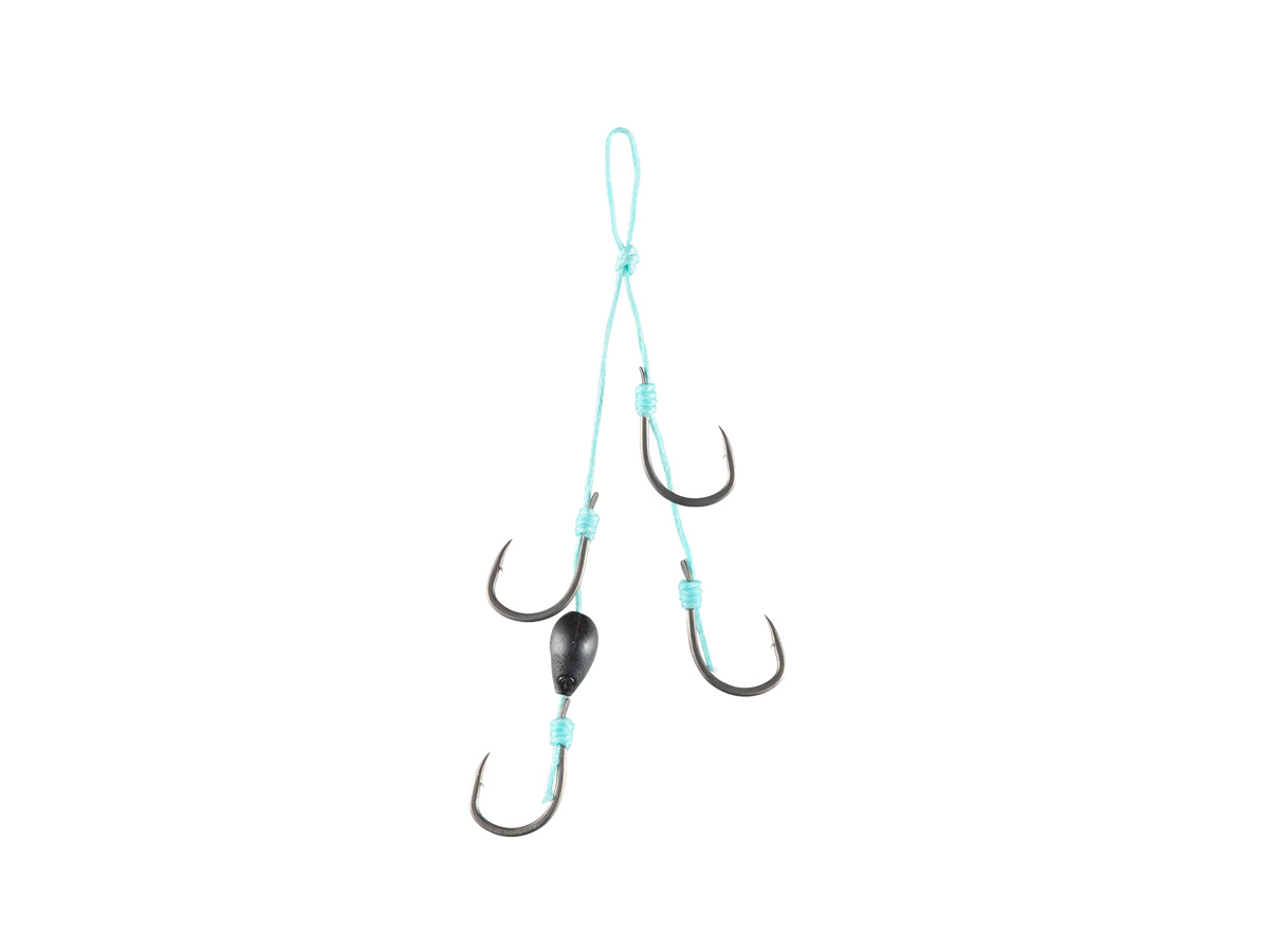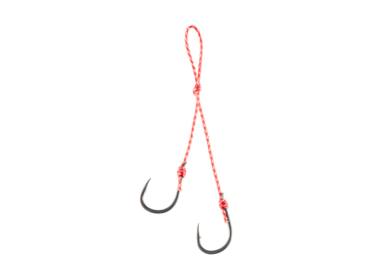 3本段差仕様で多点掛けを誘発し、キープ力のあるフック形状がバラシを軽減。紅牙同調ビーズ付属で、フックとネクタイが同調しやすい。