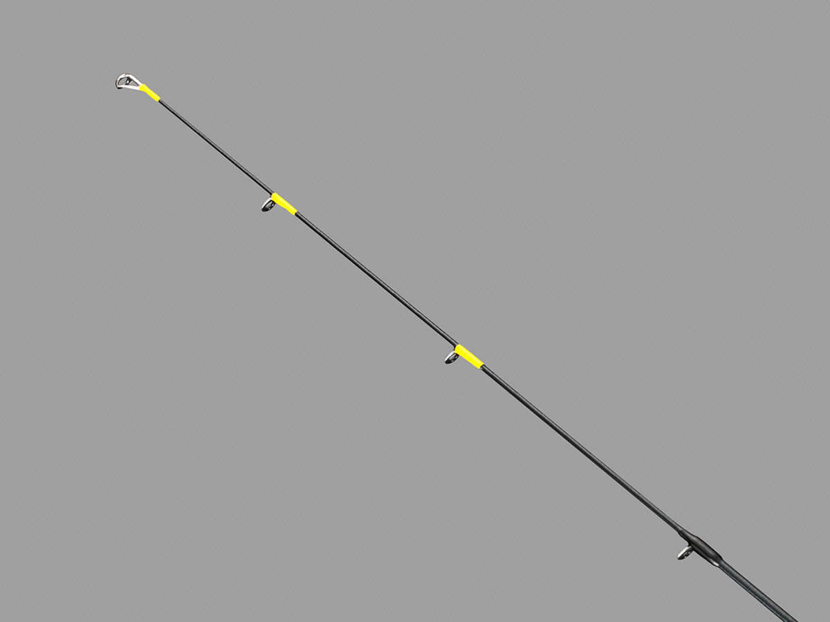 メガトップは繊維と樹脂が均一に分散するカーボンソリッドであり、どの方向にも同様の曲がりを見せます。結果、通常のカーボンソリッドに比べて強度が飛躍的に向上しました。これにより細径で柔軟、ハイテーパーな穂先を作ることが可能になり、手に響く感度はもとより穂先に表れる視覚的感度に優れるアタリのとれる穂先を実現します。