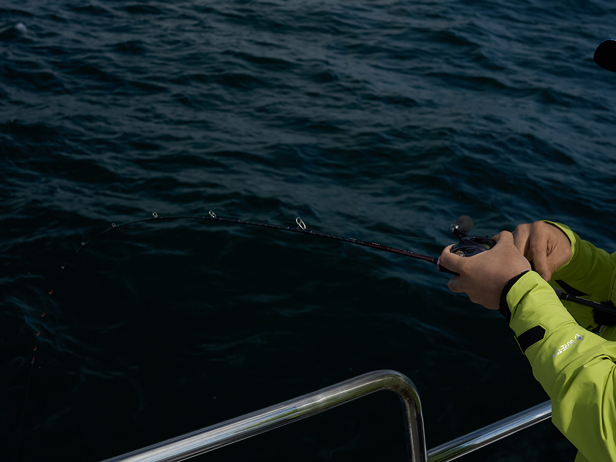 ブランド名の由来は、鯛をイメージした美しい“紅色”と獲物に食らいつく鯛の鋭い“牙”。我々を魅了してやまない特別な魚だからこそ、敬意と真剣勝負の駆け引きで鯛との真っ向勝負に挑む。「紅牙」には、そんな想いがこもっている。その領域はタイラバとタイテンヤ。どちらも一尾の鯛に向き合い一対一の勝負に挑むスタイル。「より確実に掛け、そして獲る」そんなアングラーの想いに応えるため、DAIWAは釣りを研究し、具現化する。