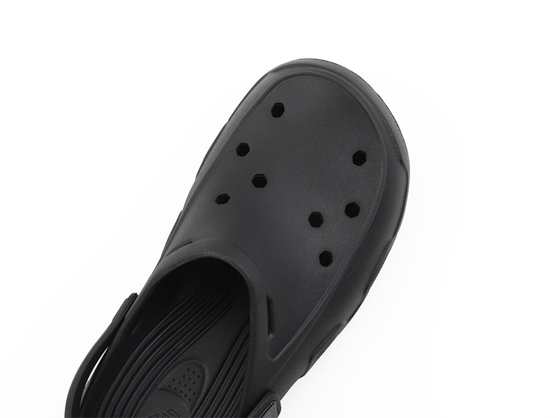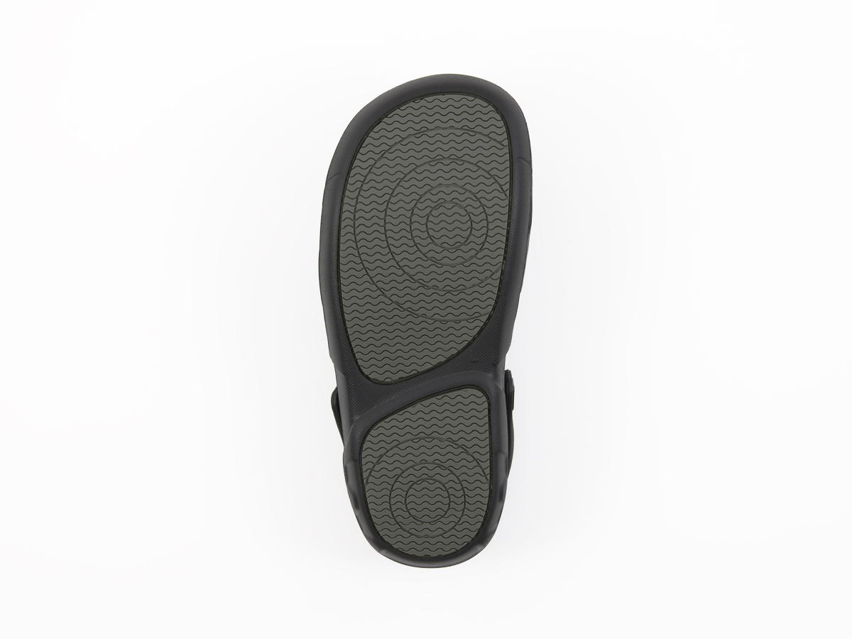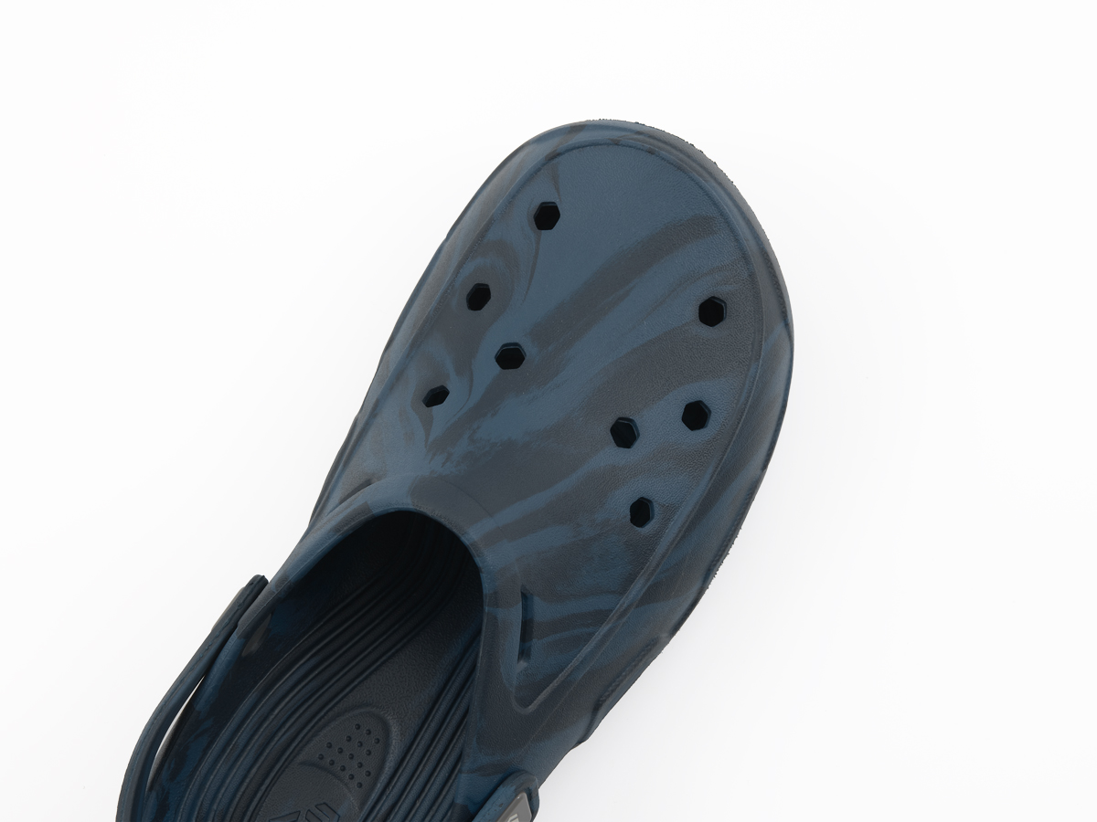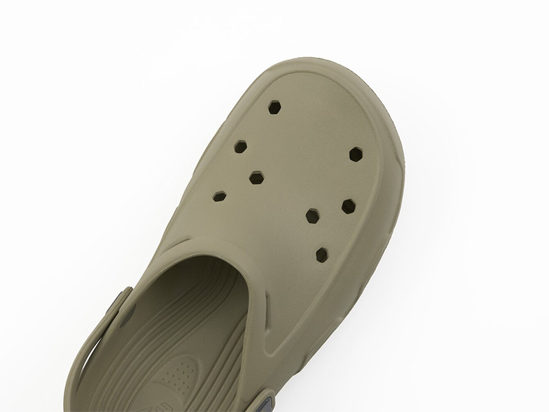 つま先には蒸れを逃がすエアホール仕様。履き心地の良い柔らかさを実現するEVA素材。