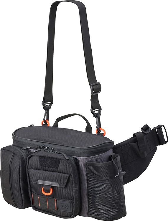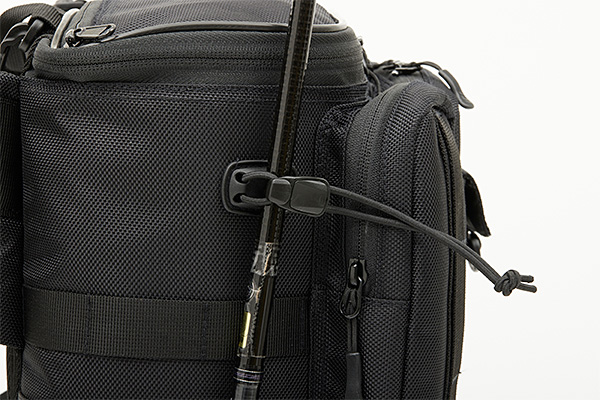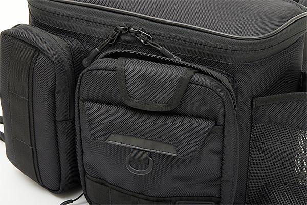 本体内部が見やすく、出し入れしやすい「大開口U字型ファスナー」を採用。頻繁に使用するルアーを収納しやすい「ルアーマット付き」フロントポケットや、小物の収納にぴったりなスリットポケットを備えています。コンパクトな「新構造ロッドホルダー」、針が引っ掛かりにくい樹脂製メッシュのペットボトルホルダー(600ml程度まで)、プライヤーホルダー、Dリング、ショルダー補助ベルト、ベルトループも装備。すっきり収納できる「レインカバー内蔵」(完全防水ではありません)。体へのフィット感を考慮したV字取り付けウエストベルトと、蒸れを抑えるメッシュパッド背面で快適な使用感を提供します。