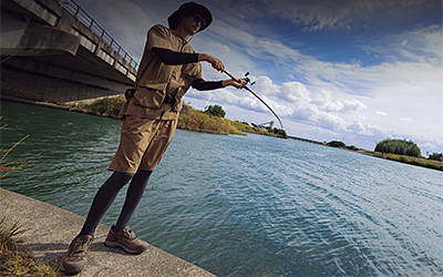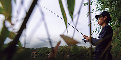 陸っぱりでは、足場が高いところから釣りをすることも多いので、何をするにしてもこれくらい(6ft.10in.)のレングスがほしいところ。とくに五三川ですね。ヤブから水辺を覗き込んだ状態でキャストしなければいけないエリアがあるのですが、そこは足場も高いんです。かといって長すぎるロッドは、両サイドともスペースが狭くて振ることができない。そんなエリアがあるかと思えば、開けたエリアで中洲目がけてロングキャストすることもあるので、6ft.10in.がちょうどイイんです。