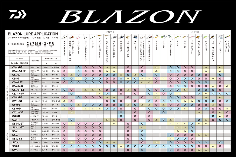 この「6ft.10in.・Mパワー」は、バーサタイルロッドを求める多くのアングラーに支持されているスペックだと思います。長さとパワーのバランスが良くて、ショートキャストもロングキャストもこなすし、“扱えるルアーウエイト”の幅も広い。だから店頭にたくさんの610Mが並んでいると思うのですが、なかでも“BLAZONの610M”がイイのは、ハードベイトとソフトベイト、それぞれの適性もバランスが取れているところです。
