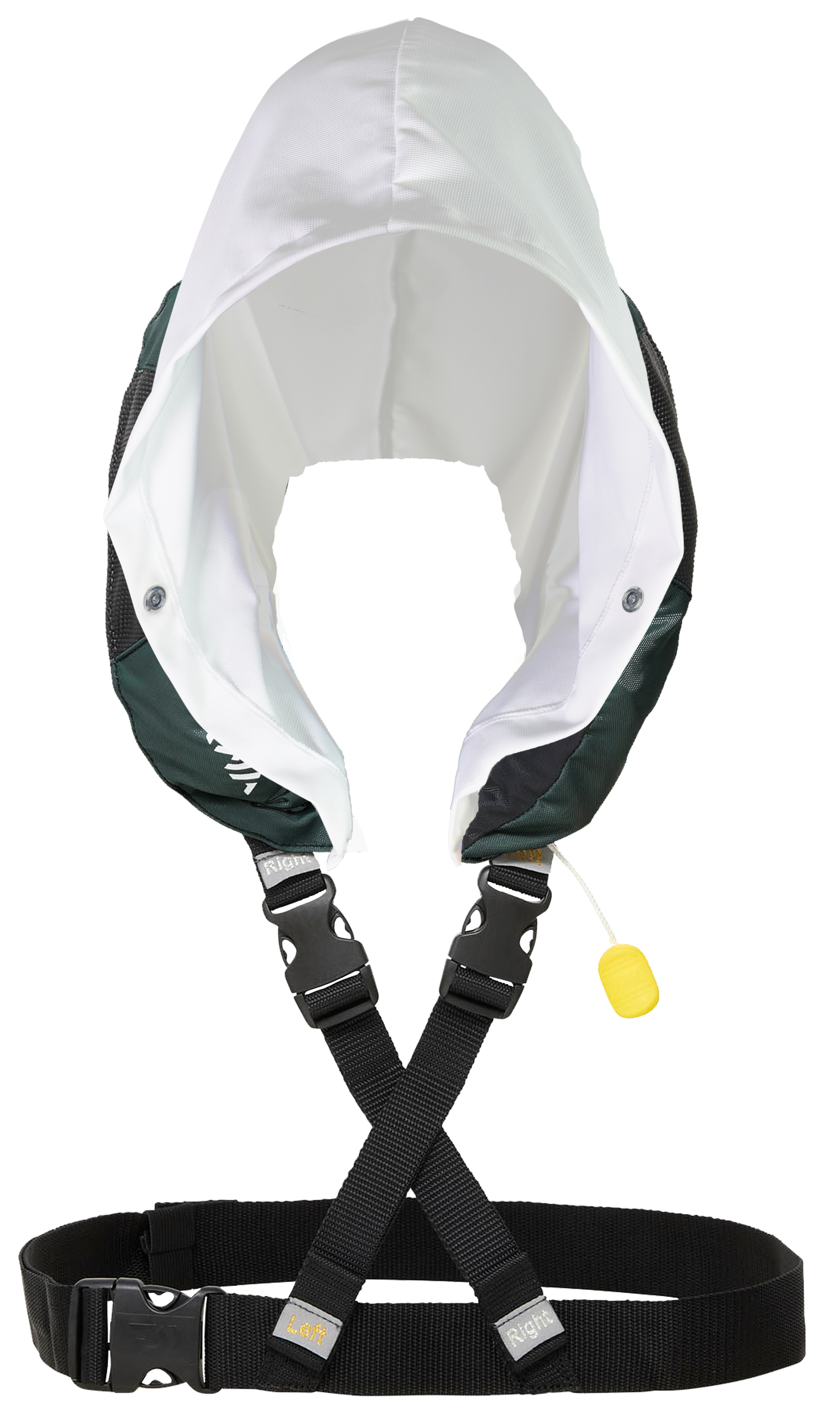 ベストと併用可能な小型タイプ手動膨脹に熱中症対策用のフーディー機能が追加。