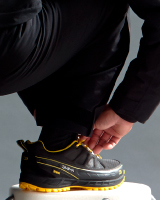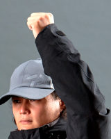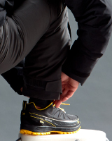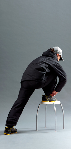 身長168cmのモデル(胸囲90cm/股下75cm)がMサイズとLサイズを着用した場合 (袖・裾の長さや着用時のシルエットに違いが見られる) |