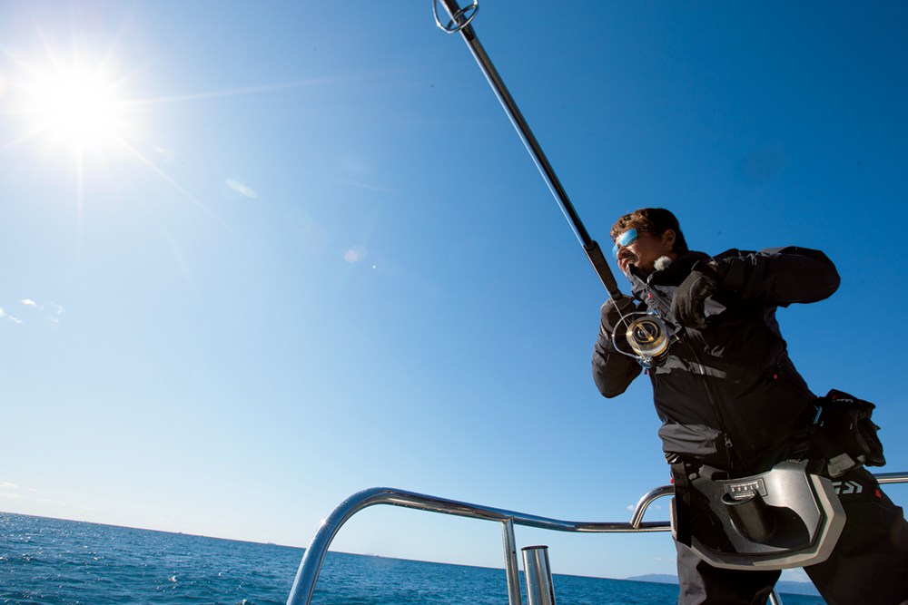 自信を持って挑める絶大な安心感 ![]() ロッドに装着してはじめて機能するリール。投げて、巻いて、動かし、掛ける。そこで初めてリールは真価が測られる。 「ロッドに対してのウエイトバランスは重要。前過ぎても後ろ過ぎてもいけない。20ソルティガは絶妙ですね。キャスト直後の、スプールからの放出のループも綺麗で安定している。飛距離アップとトラブル減少はすぐに実感できるレベル。スプールのエッジ形状やサイズ設計の恩恵でしょう。ルアーを操作するときの巻き心地、回収する時の抵抗も軽く感じるし、とてもスムーズ。すごくしっくりくるし、手に馴染む。ドラグも性能が高いことはもちろん、高負荷でも安心でき、ドラグ音も快適なサウンドを奏でると思います」(佐藤)