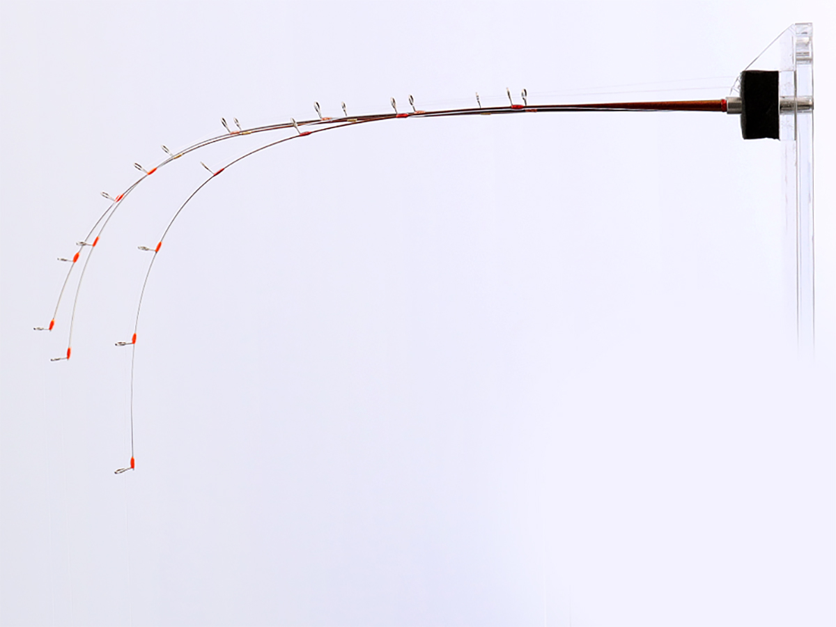 先端部は見やすいオレンジカラーでアタリが分かりやすい。誘いやすく確実に合わせられる「2段テーパー構造」設計。