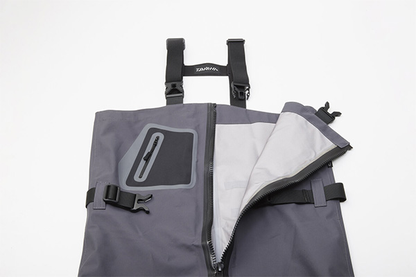 フロントにフルオープンファスナー採用!フルオープンになるので、着脱が楽で、小用事に便利。ウェーダー内のムレも一気に放出。