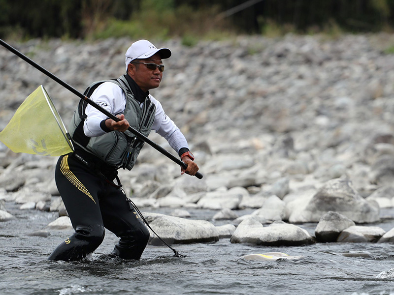 スタンダードウェアにも、鮎SPウェアにも合うゴールドカラーの鮎師向けデザイン。