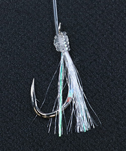 針の胴打ち部分に光沢のあるホログラムシールを直貼りし、ベイト(エサ)掛かりが飛躍的にアップする仕様になっている。