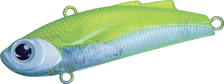 ■鉄板バイブでは出来ないフォール、ドリフト、3Dダート、スローリトリーブ、繊細なアクション、樹脂バイブならではの性能をもった高汎用型スタンダートサイズバイブレーション。
