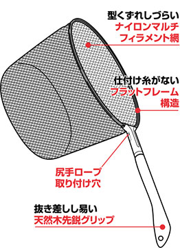 型くずれしづらい2mm目のナイロンマルチフィラメント網を採用し、耐久性に優れている。