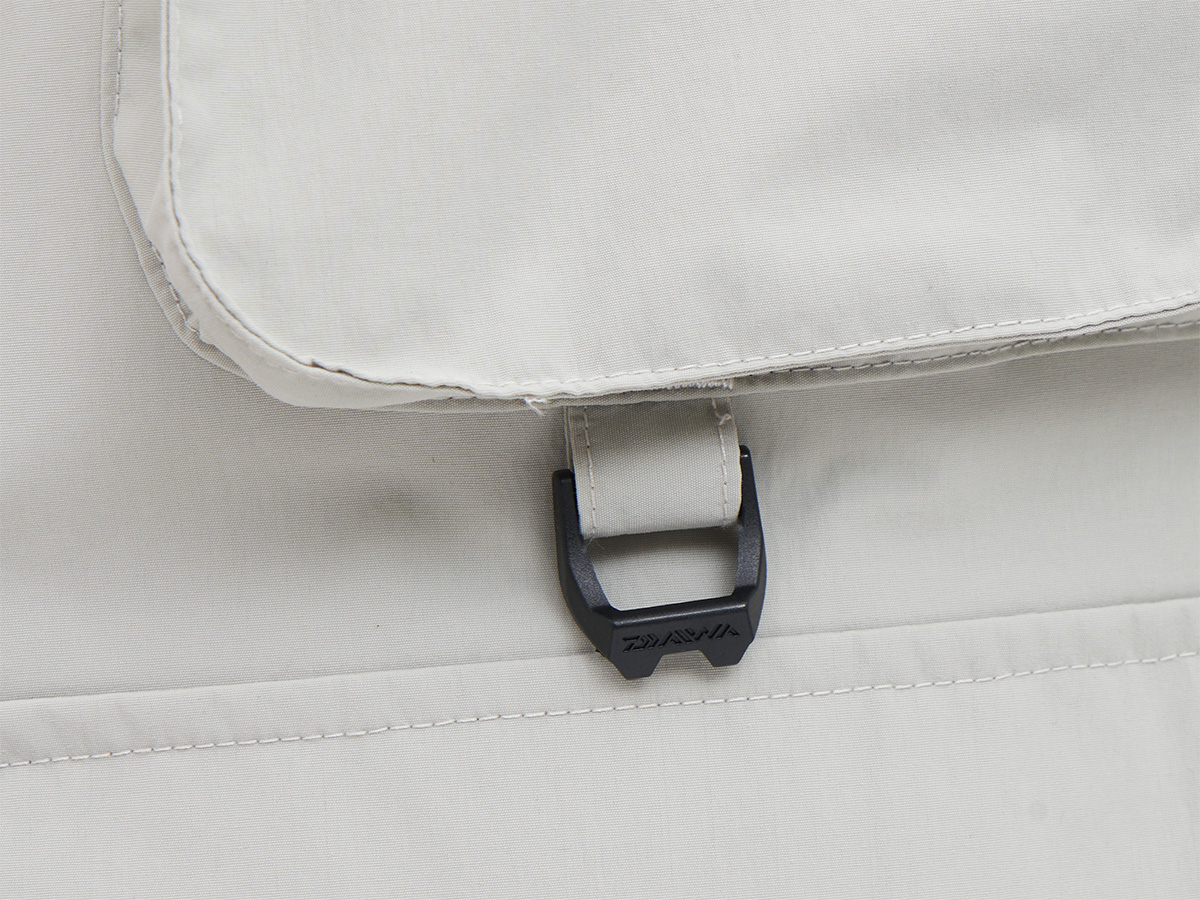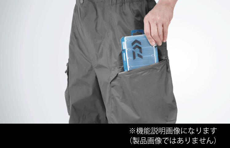 釣行時の動作に干渉しづらく、収納物を取り出しやすい大型ポケットを搭載。