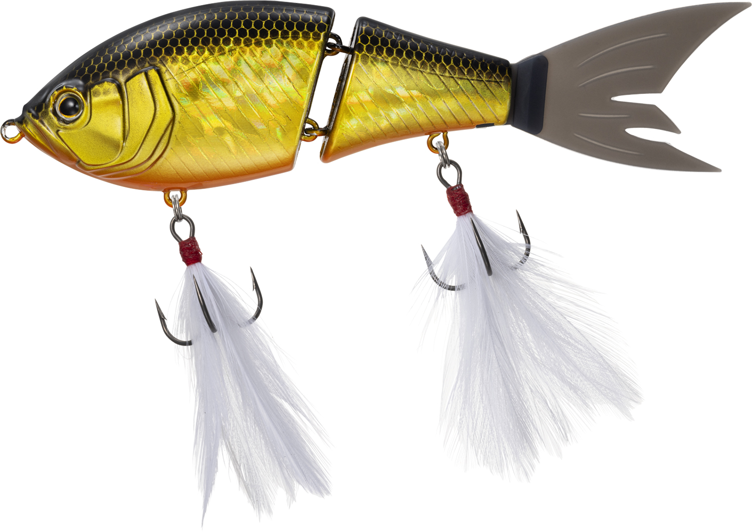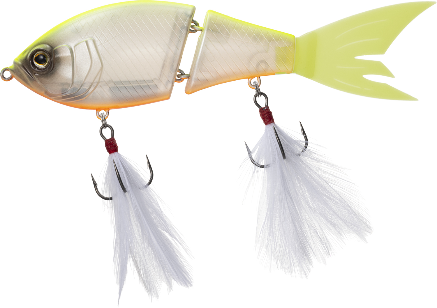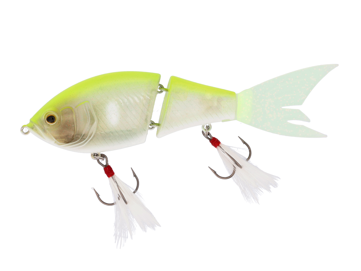 ジョイント部分を若干斜め方向にすることでルアーのアクションを真横から斜め下方向に。他のジョイントルアーには無いスライドダイブアクションが特徴。