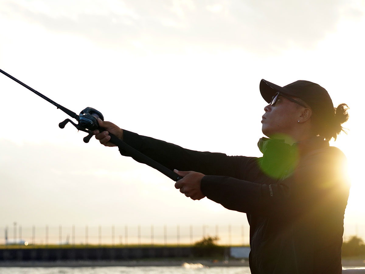 サミングも有効ですが、余剰なブレーキは掛けたくないし、微妙な匙加減での操作になるので安定感が出せずバラつきます。現在の厳しいフィールドコンディションを考えると、キャストミス=釣果ダウンに直結します。なので、キャストの精度を高めることがとても大切です。PEロングキャストモードの強みは、スプールから糸が浮き上がらないタイミングを適切にデジタル制御で処理し、その後は“限りなく”ブレーキ力を落とせることに尽きます。結果、トラブルを抑制しつつ、限界まで飛距離を伸ばせます。恐れを無くしてロッドをしっかり曲げ込むことができます!ベイトキャスティングをもっともっと楽しみましょう!