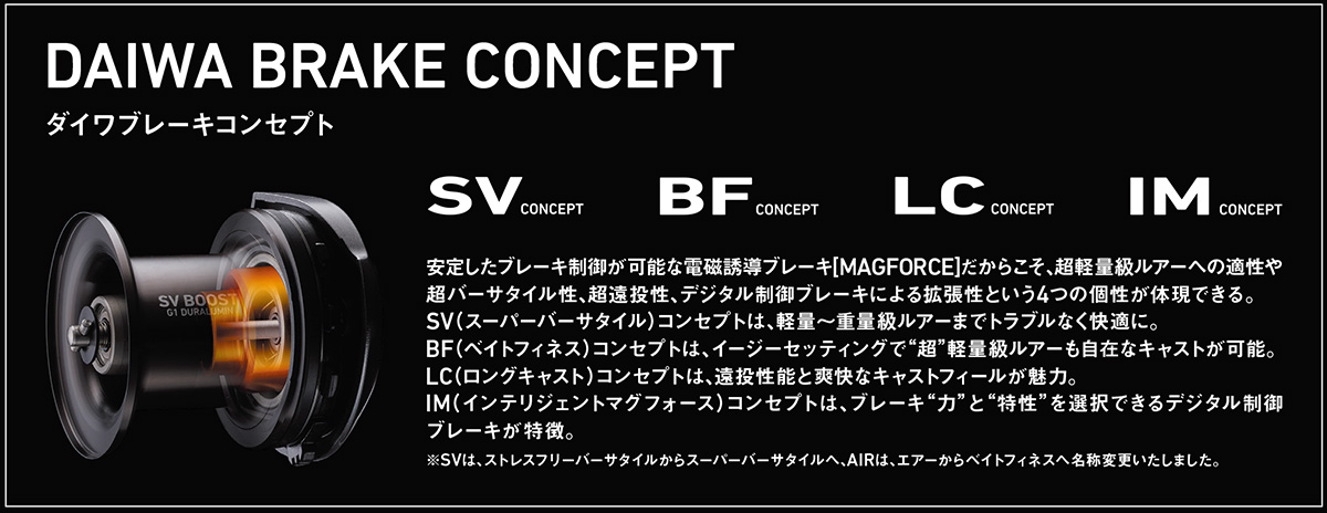 ※PEロングキャストモードおよびビッグベイトモードを使用するには、リール本体のアップデート後、ダイワアプリでブレーキモード設定操作が必要です。