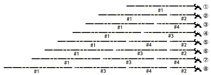 アイテム | #1 | #1+#3 | #1+#2 | #1+#4 | #1+#2+#3 | #1+#3+#4 | #1+#2+#3+#4 |