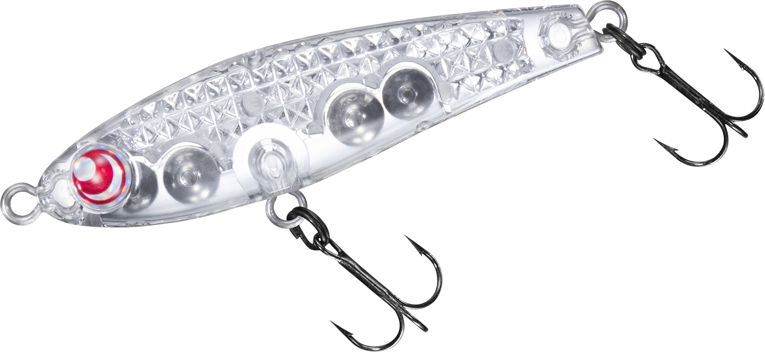 更に、泳いでいる時の反射光の明滅まで再現。夜間や日陰のわずかな光でもベイトフィッシュと同様、昼夜・場所を問わず光でターゲットにアピール。