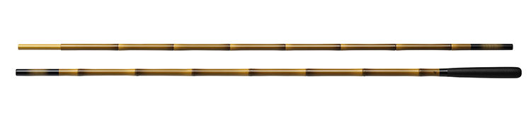 最もオーソドックスな小節の竹地に漆黒の口巻デザインの竿掛。