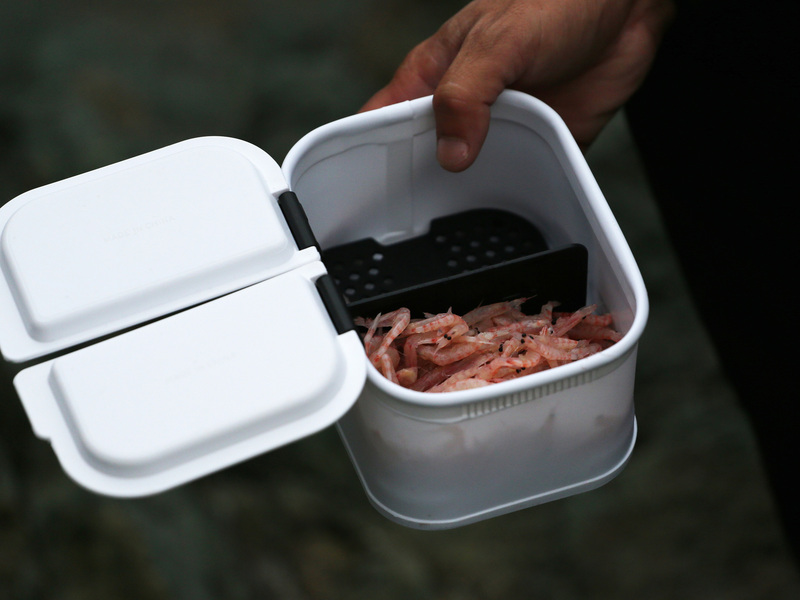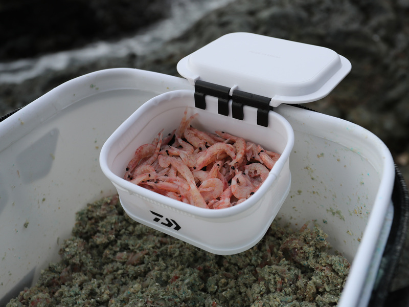 適度な重さがあり風に煽られても開きにくい新形状成型フタを採用し、付けエサの余分な水分が切れるスノコ付き。