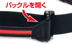 1.まず、速攻オモリポーチを外し、次にスイングバックルを外す。