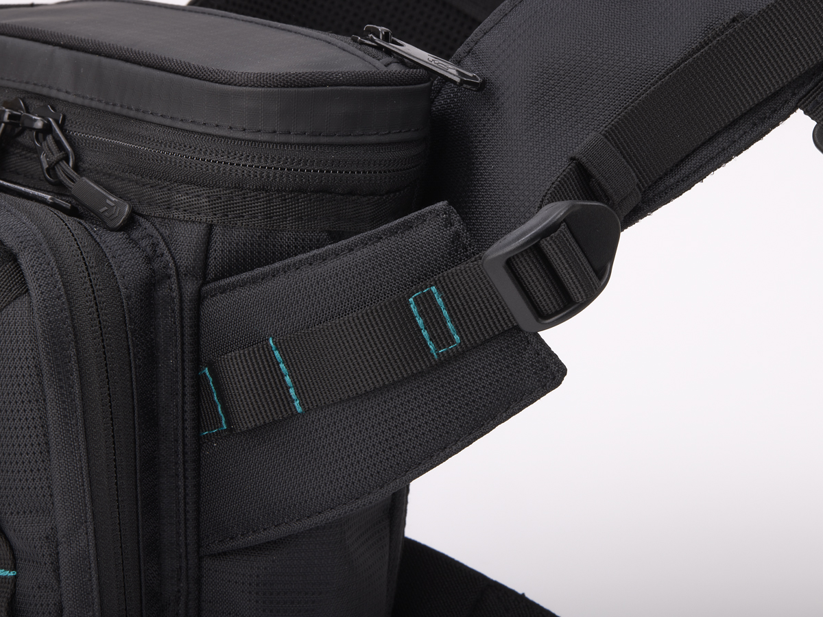 身体と太ももへの「フィット感を考慮したベルト角度」、調整が簡単でゆるみにくい「もも補助ベルト」、身体へよりフィットさせる「スタビライザーベルト」など機動性を重視した機能も充実。
