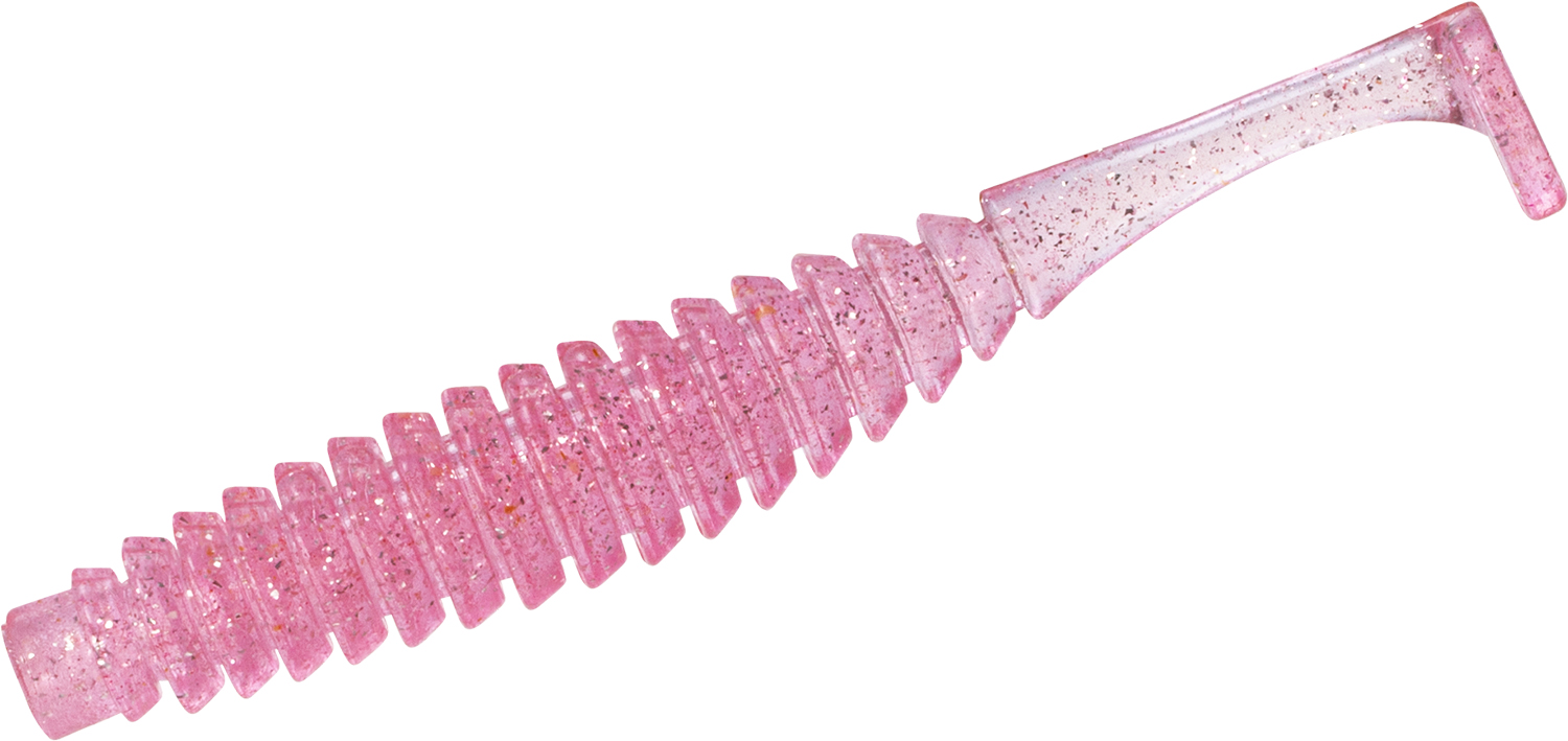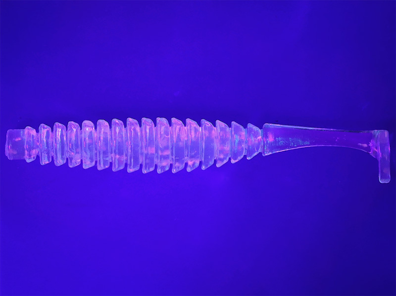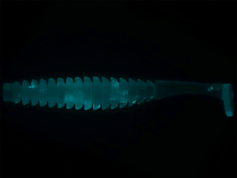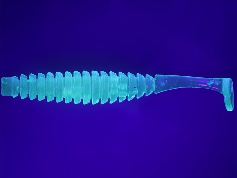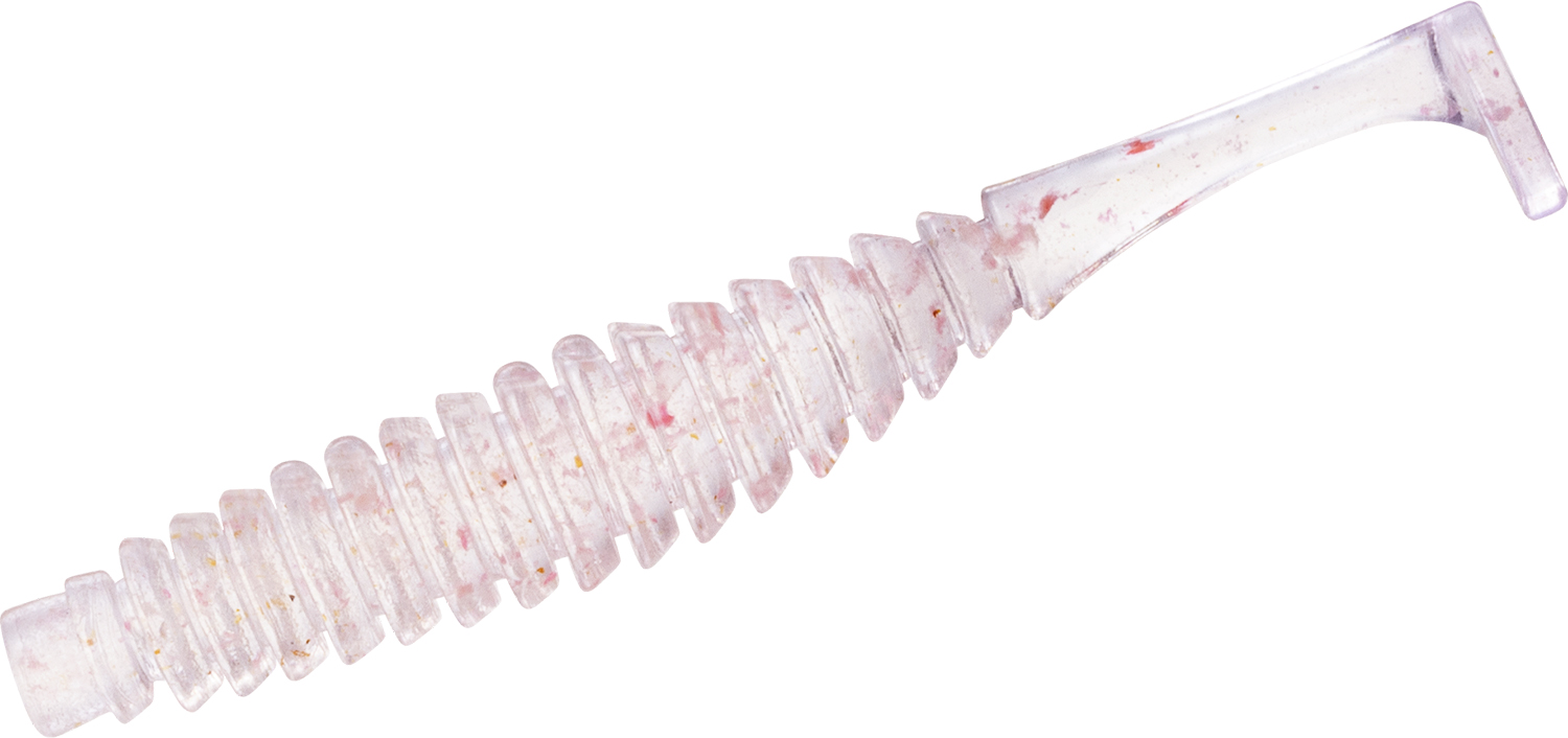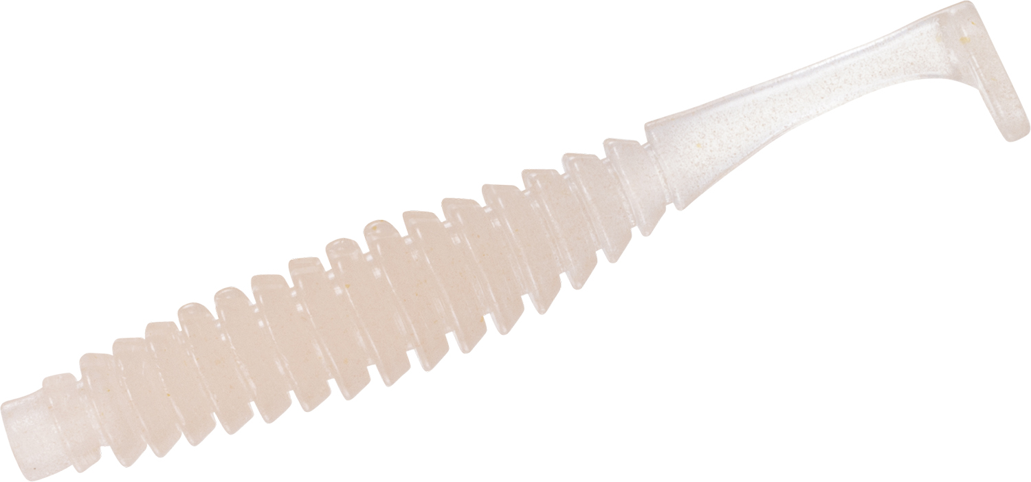 ムーブビームはシャッドテールの大きさを最小限に留め、逆リブボディ形状による複雑な水絡みでスローフォールを実現。