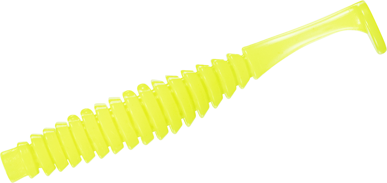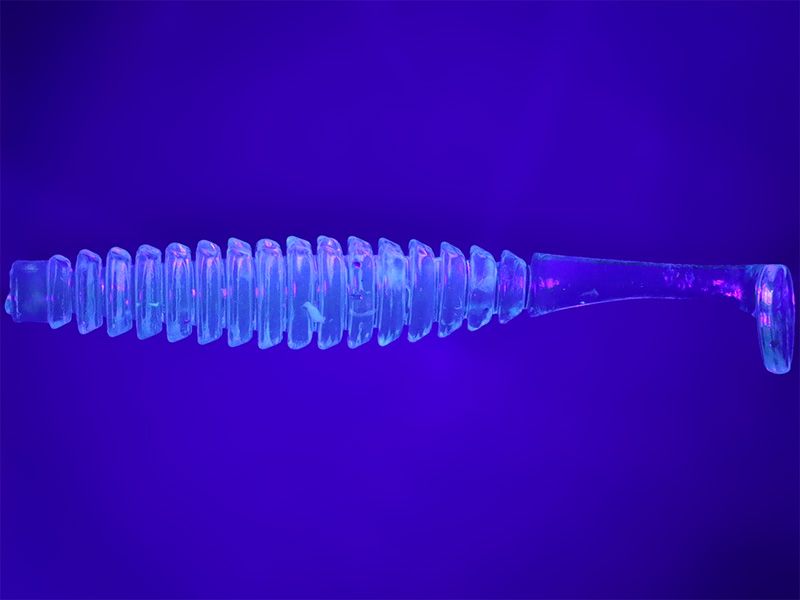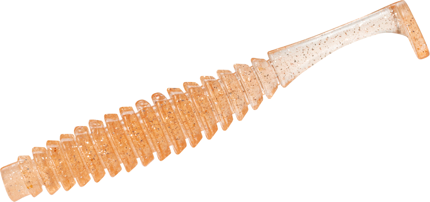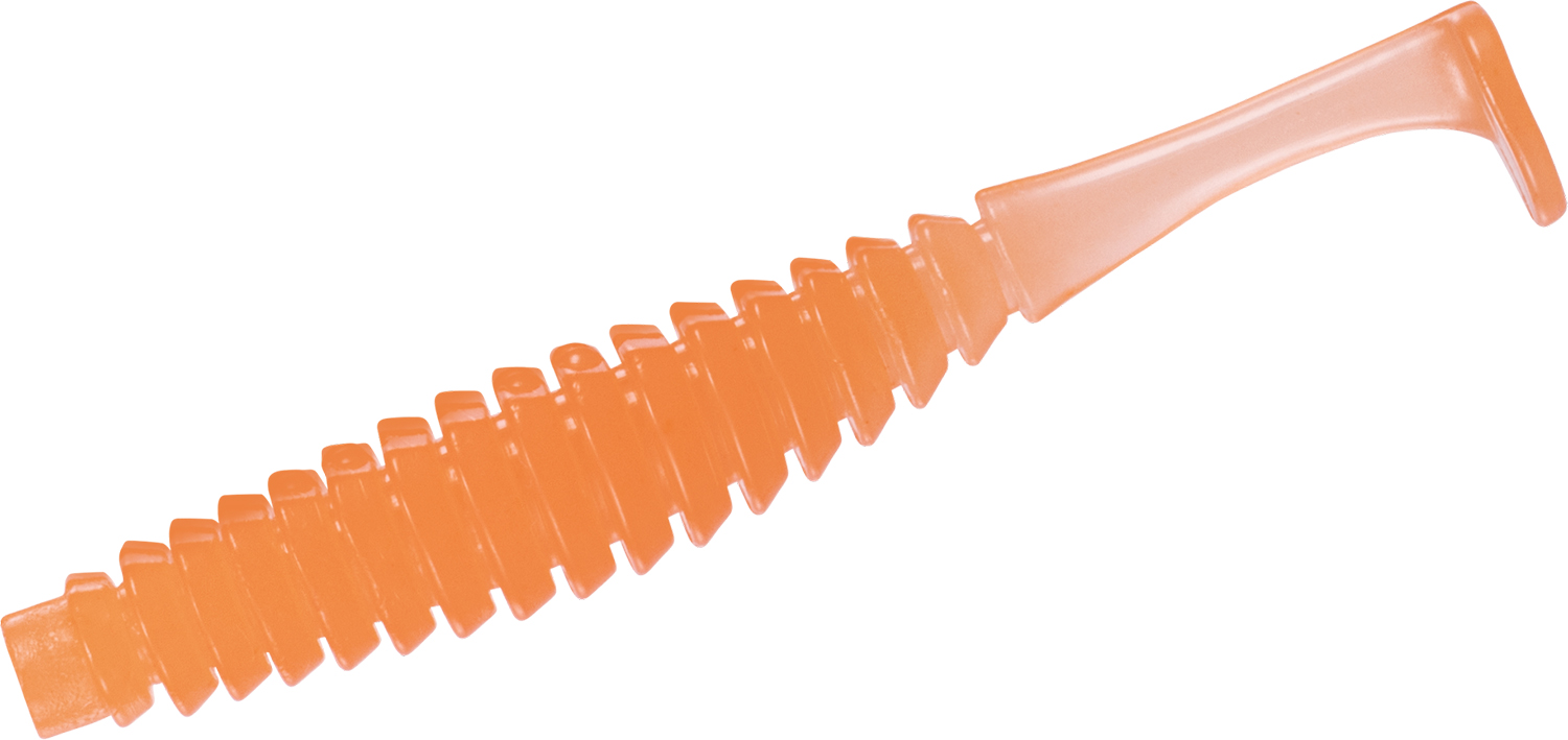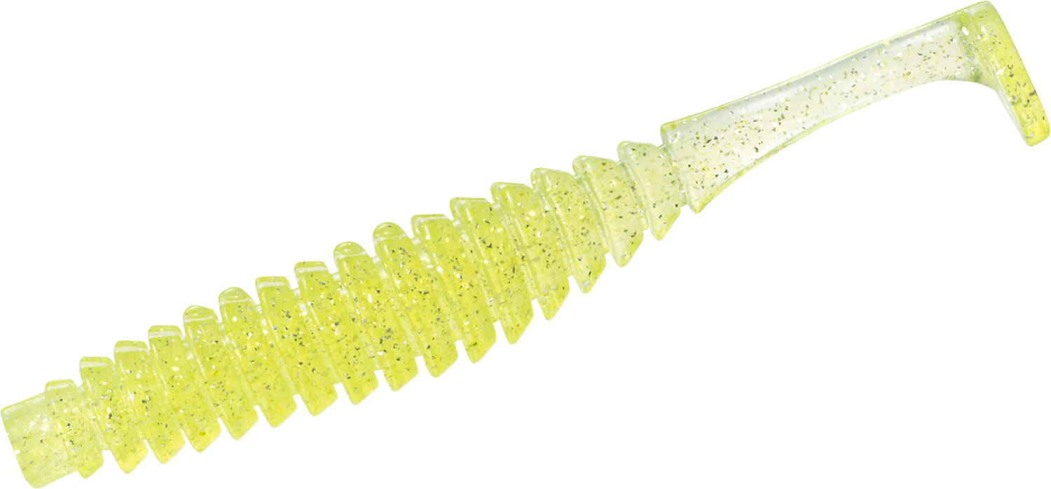 ムーブビームはシャッドテールの大きさを最小限に留め、逆リブボディ形状による複雑な水絡みでスローフォールを実現。