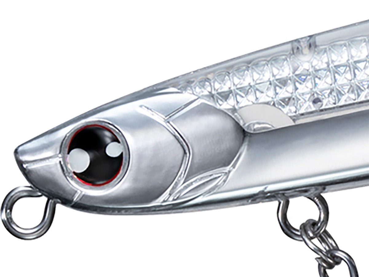 更に、泳いでいる時の反射光の明滅まで再現。夜間や日陰のわずかな光でもベイトフィッシュと同様、昼夜・場所を問わず光でターゲットにアピール。