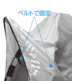 内部上部にはメッシュシートがあり熱気が抜けやすい。また、内部にはメッシュポケットがるので、収納バッグや小物入れに使える。