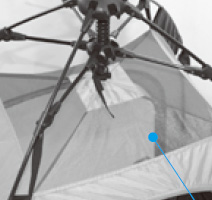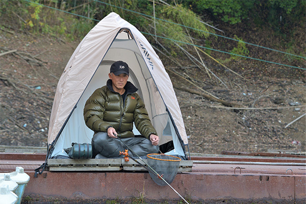 設置・収納がワンタッチでできるクイックセット構造を採用。サブフレームにより、簡単に設置・解除が可能なクイック構造。厚手生地のフライシートは目止め加工済みで、耐久性に優れ、雨や防寒対策に最適。開口部からの雨の浸入を防ぐ折りたたみ式のひさしが付いており、熱気がこもりにくいメッシュ天窓も装備。専用ターポリンインナーシート(約108×133cm)を標準装備し、出入りしやすいリアファスナー式出入口も設置。